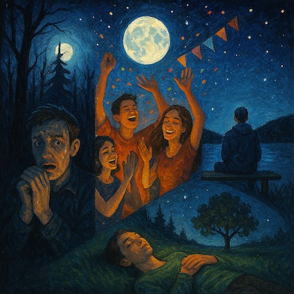 La nuit offre de multiples facettes, la crainte, la fête , le calme, ... Elle est le théatre de nos rêves et de nos cauchemars, elle porte conseil et permet la recharge d'énergie quand elle est sere...