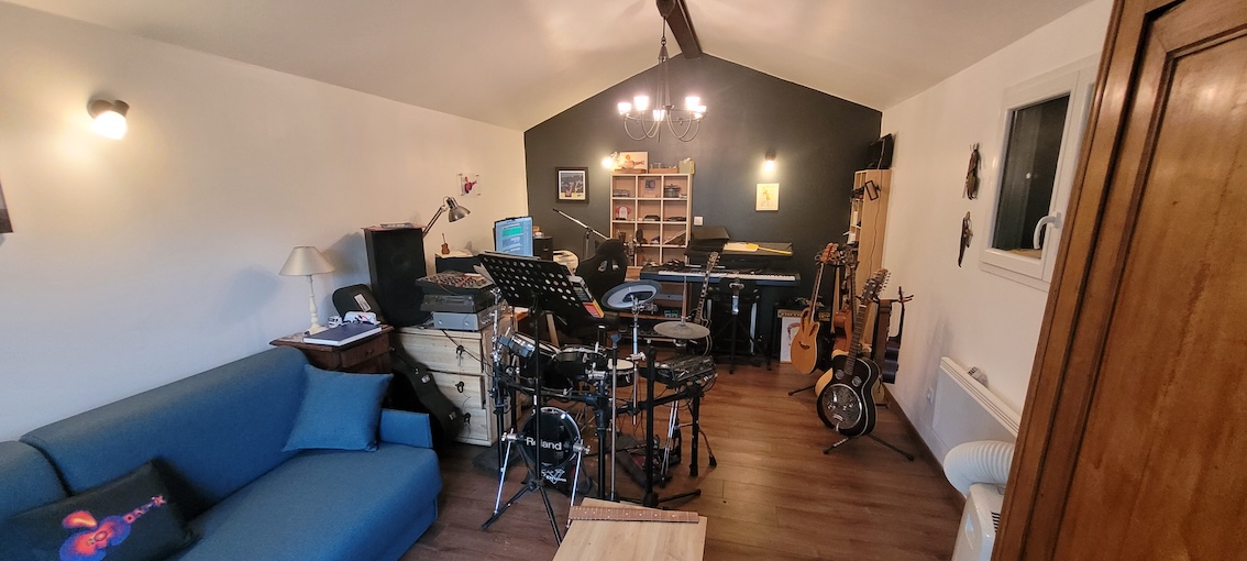 Lors de son installation dans la bergerie, le studio Monmix avait du cohabité avec un lit qui servait de chambre d'appoint (c'était surtout un lit en trop qui était arrivé du déménagement de Rome !)....