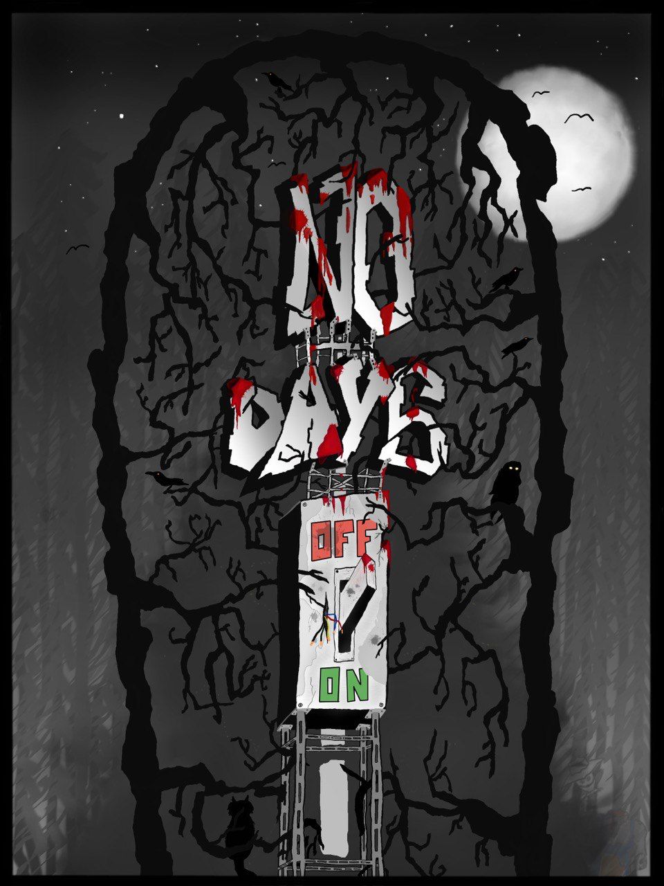 Le titre de l'album "No days off" est issu d'un dessin plutôt noir de Grigou fait sur son Ipad