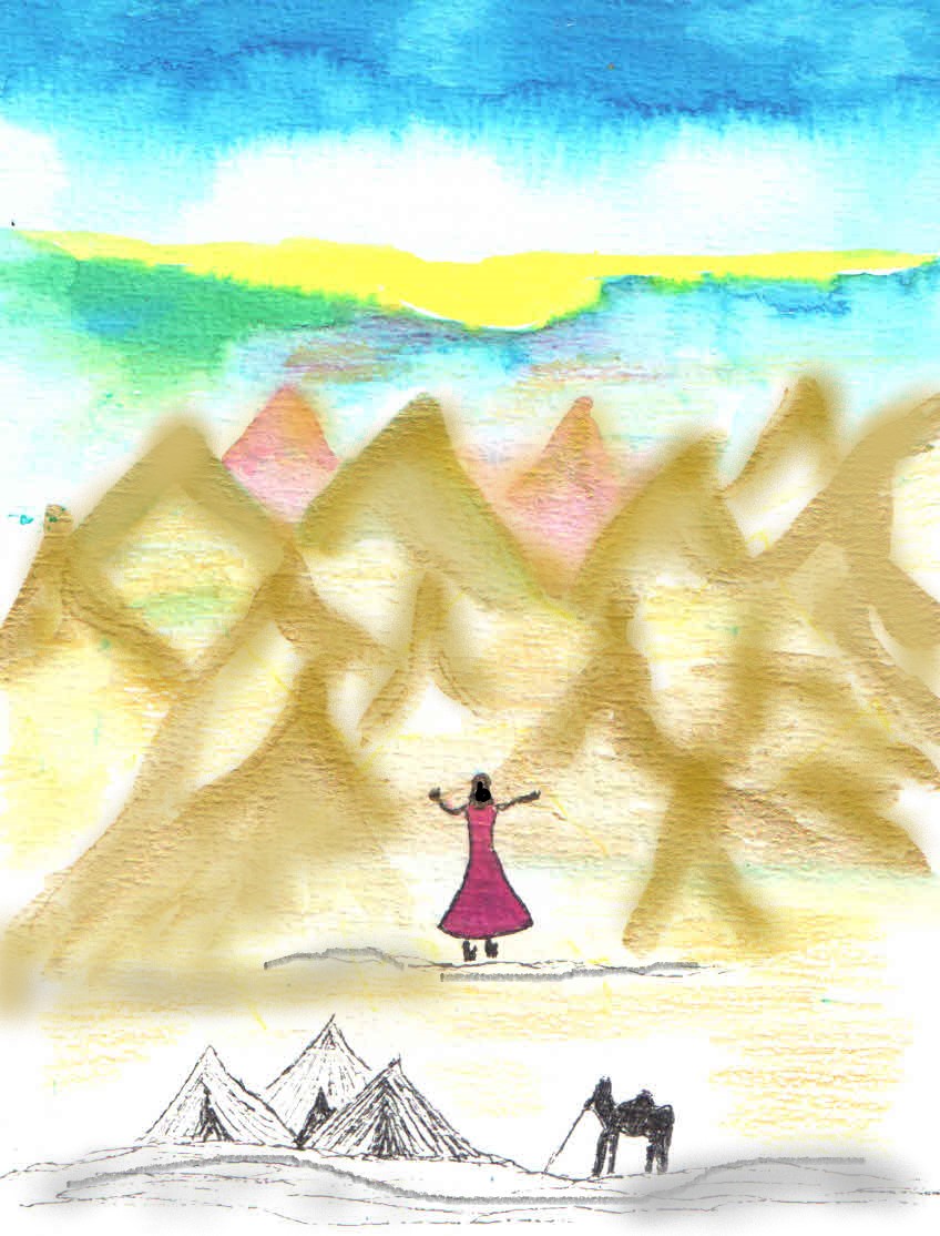 Et voici un vrai pantoum en vadrouille "Chant du désert" qui vous emmène sur un chemin musical arabo-oriental C'est donc avec l'idée de faire vadrouiller les pantoums que Monmix a proposé d'en emmener un sur ce chemin . Et Jo a écrit ce texte avec cette couleur et cet atmosphère en tête. Sur une rythmique orientale, des vocalises de mezzin ponctuent ce voyage d'espoir que l'on vit chaque jour que le soleil se lève